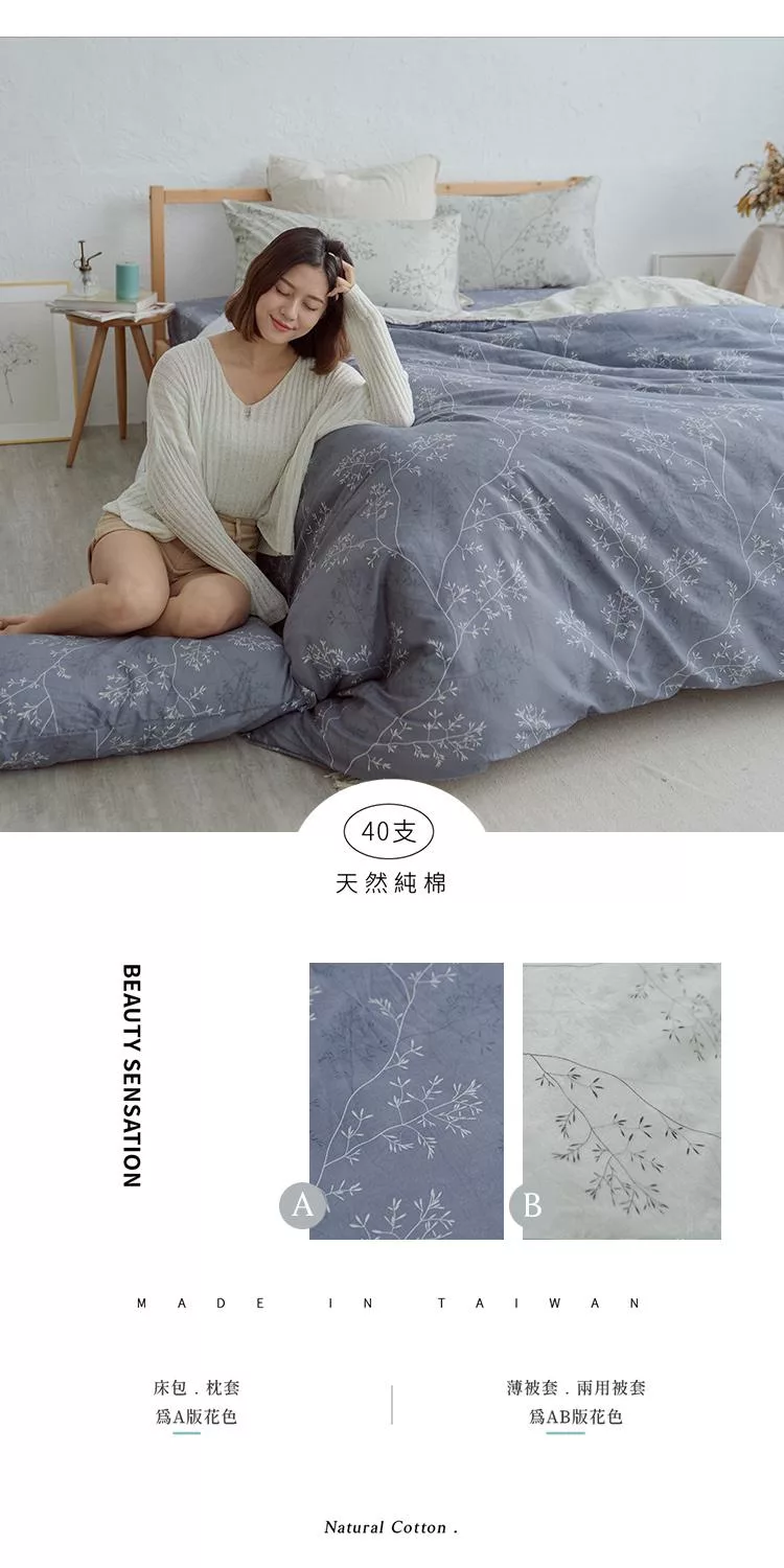 《DUYAN 竹漾》台灣製 芬蘭撞色設計-單人床包二件組- 靜謐藍