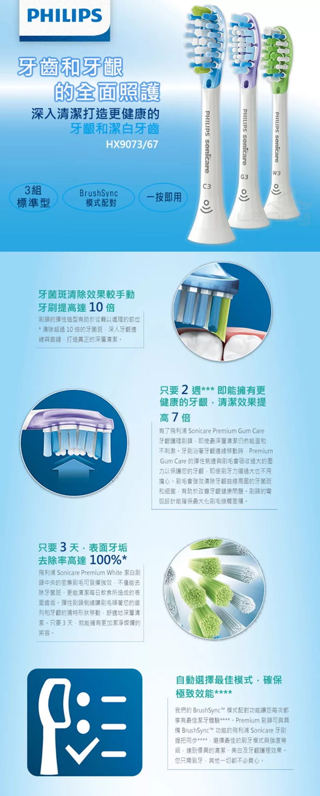 【Philips飛利浦】官方直營 Sonicare智能美白刷頭三入組(HX9063/96) (買一送一)