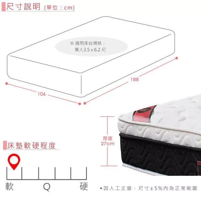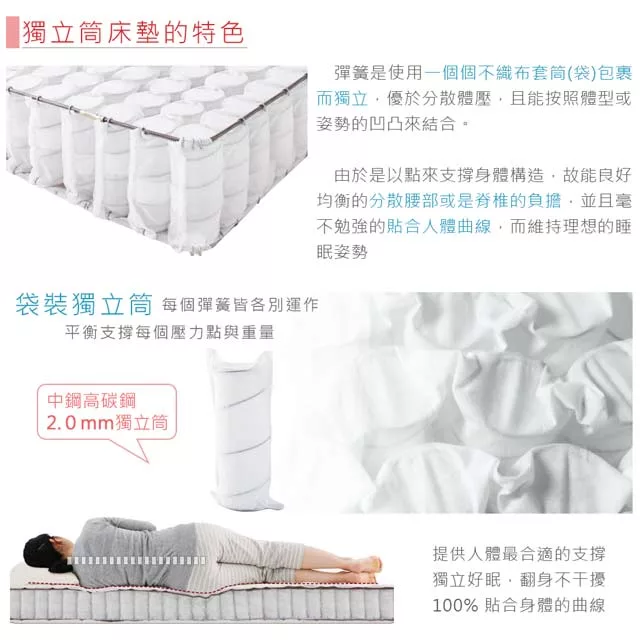 【Super Life】高級日系透氣豪華獨立筒床墊-單人3X6.2尺優雅白