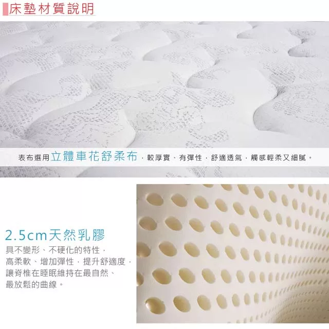Homelike 喜家居山寧泰2.5cm乳膠三線獨立筒床墊-單人3.5尺(2538)