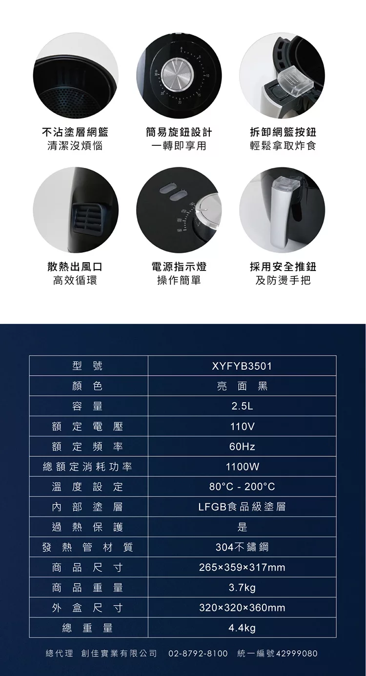 【奇美CHIMEI】玻璃氣炸鍋 EV-02G0FM