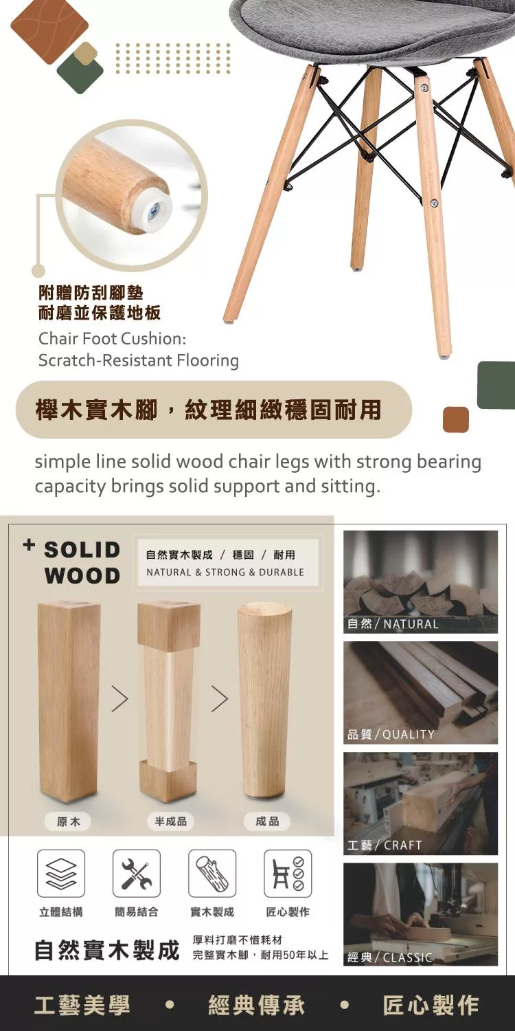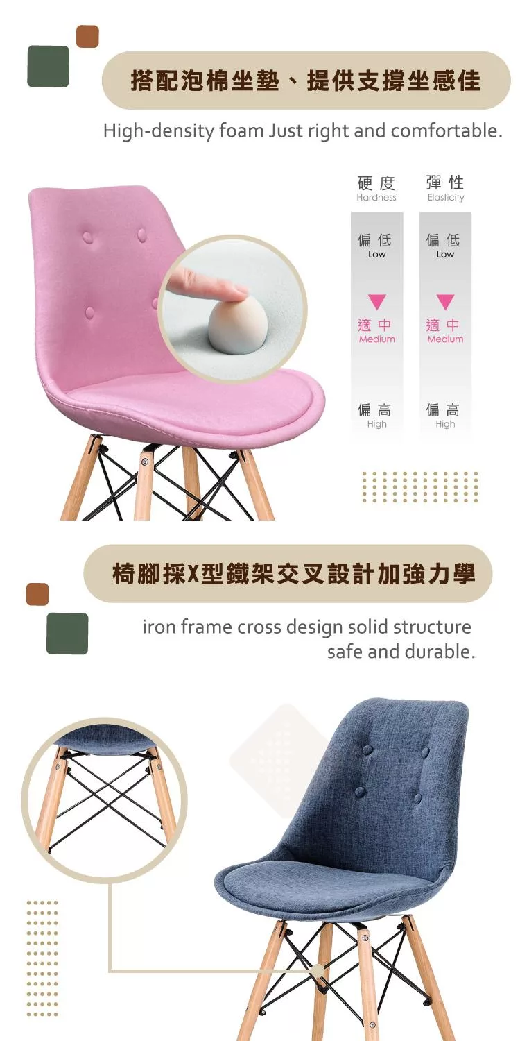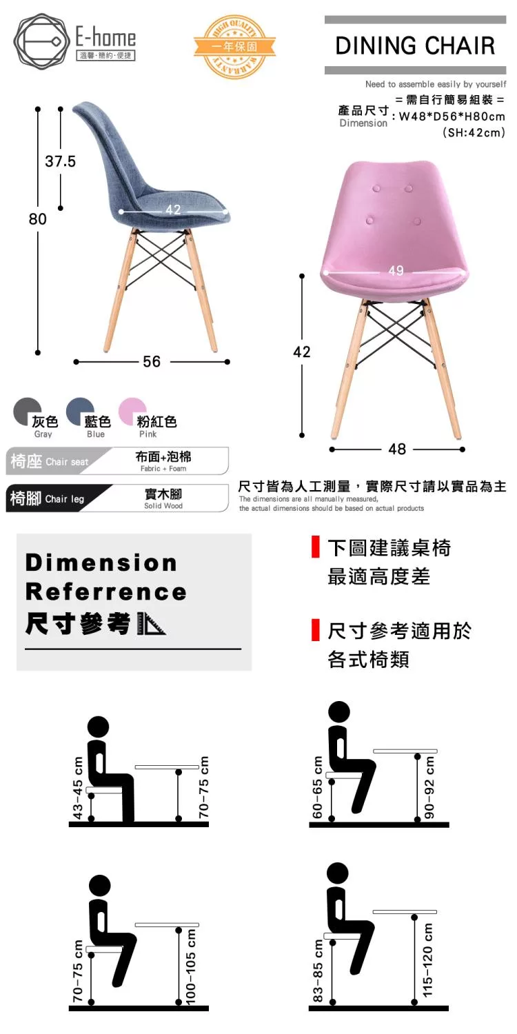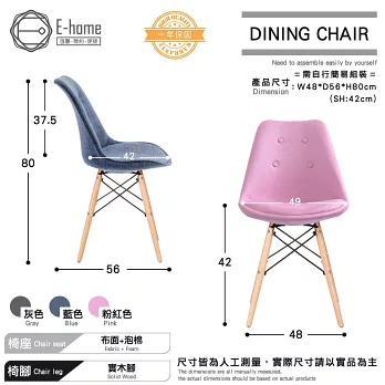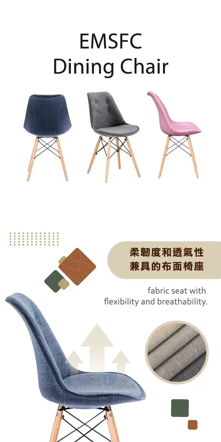 E-home EMSFC北歐布面拉扣軟墊櫸木腳餐椅-三色可選