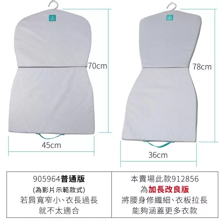 ●另有售其它2款可折疊收納的燙衣板,分別是912863普通版(短胖)和912856加長改良版(長窄),如圖示,提供給您參考。