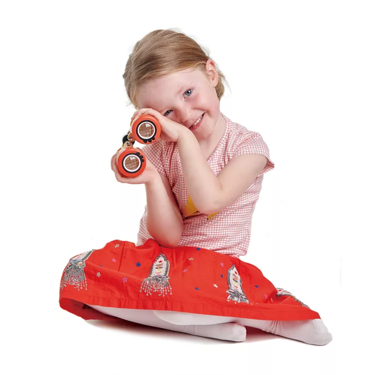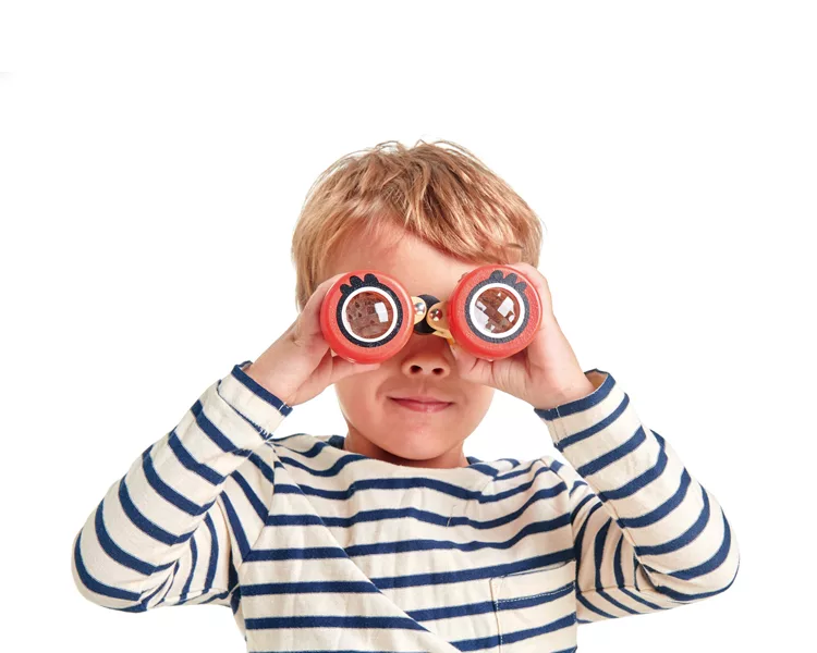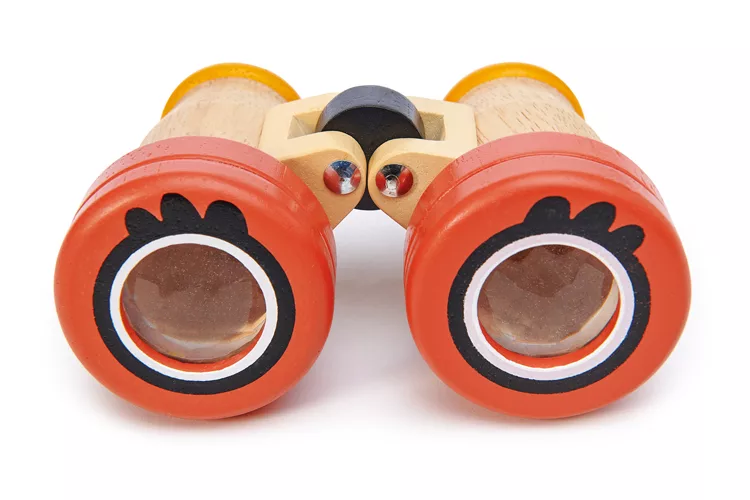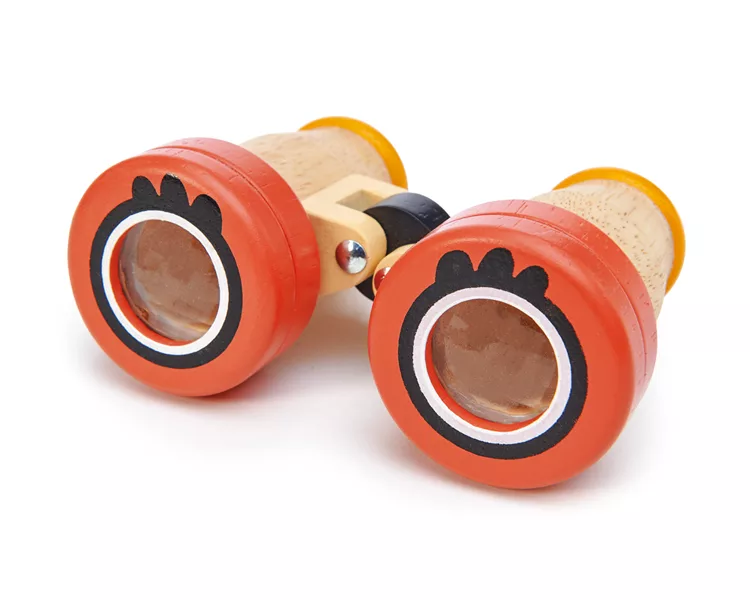 帶萬花筒鏡片的實木雙筒望遠鏡。像真正的雙筒望遠鏡一樣,能調節改變眼睛的寬度。建議搭配『森林之王探險組』,充滿童趣,讓想像力奔馳在熱情的野生動物園。