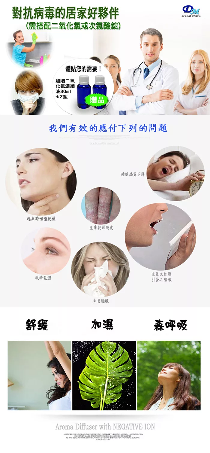 【H2O】療癒蘑菇頭拍拍燈加濕器 隨機加贈花果香精油1瓶 白色