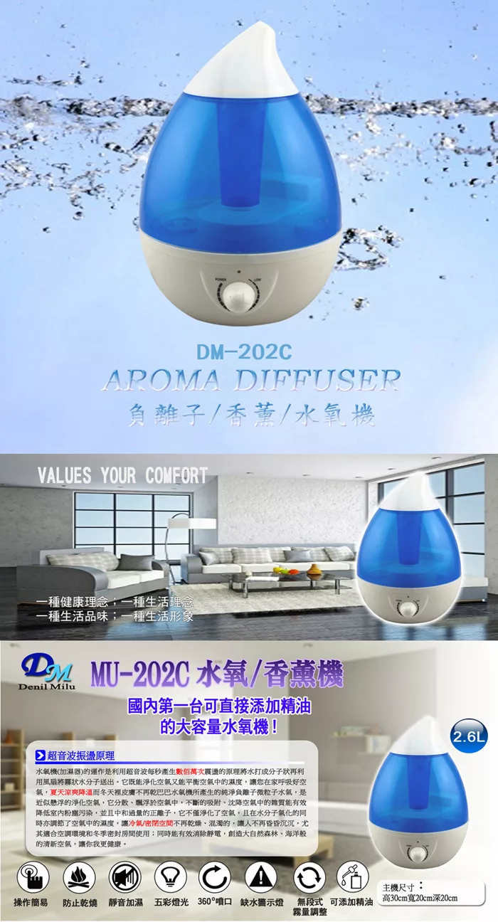 【H2O】療癒蘑菇頭拍拍燈加濕器 隨機加贈花果香精油1瓶 白色
