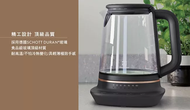外宿飲水【Electrolux伊萊克斯xLAICA】1.7L玻璃溫控電茶壺 2.8L雙濾心濾水壺 E7GK1-73BP UFSAA03