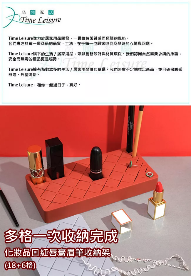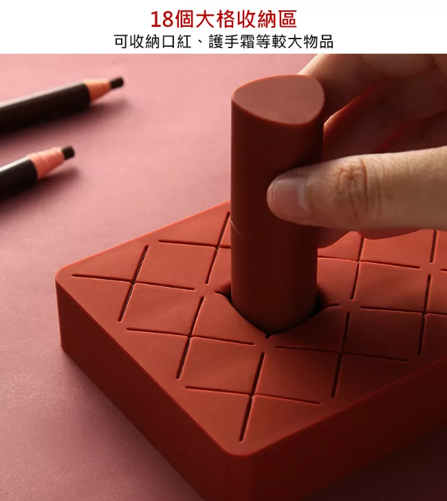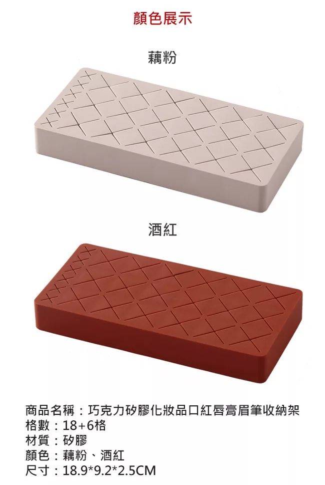 Time Leisure 巧克力矽膠化妝品口紅唇膏眉筆收納架(18+6格/酒紅)