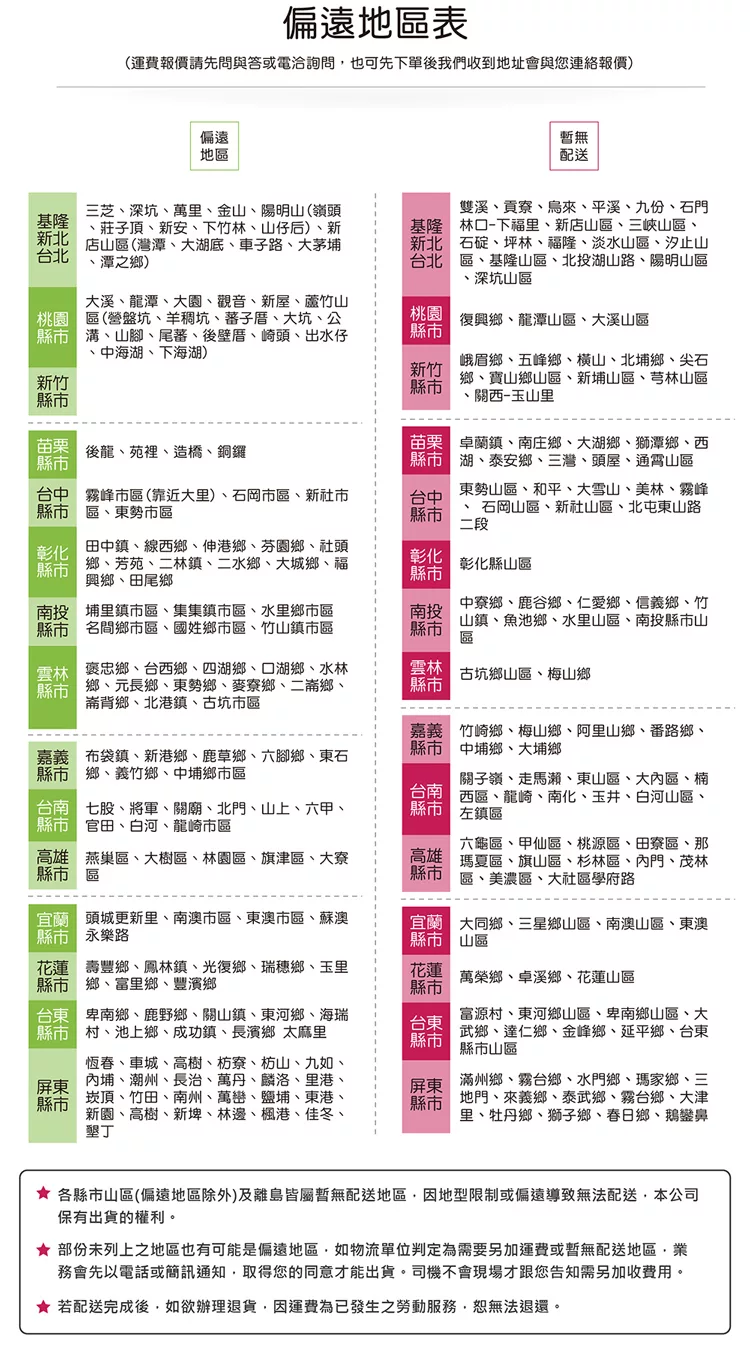 (偏遠地區由物流公司判定,您可先行下單,後續由專員致電報價)
