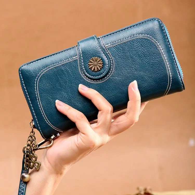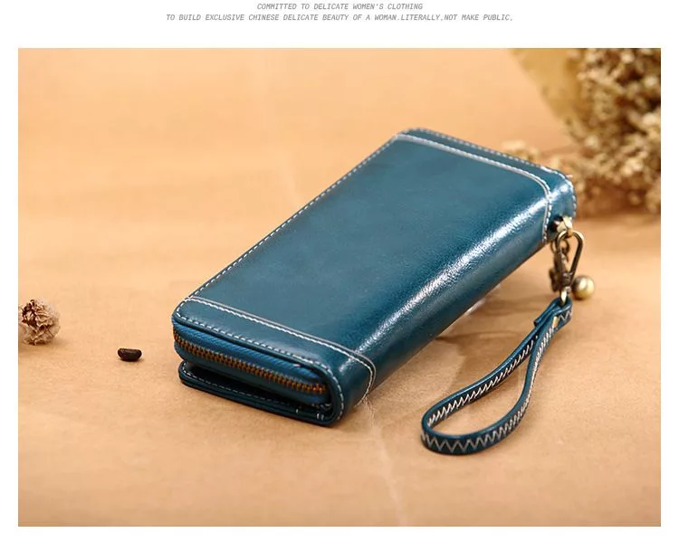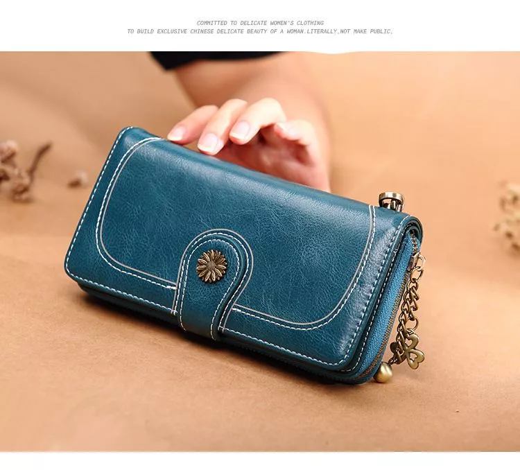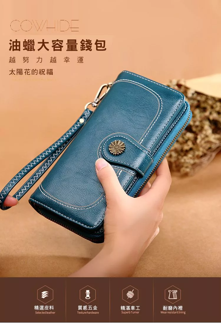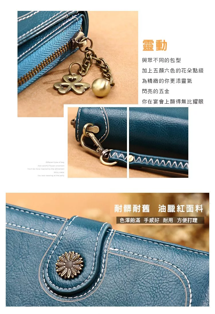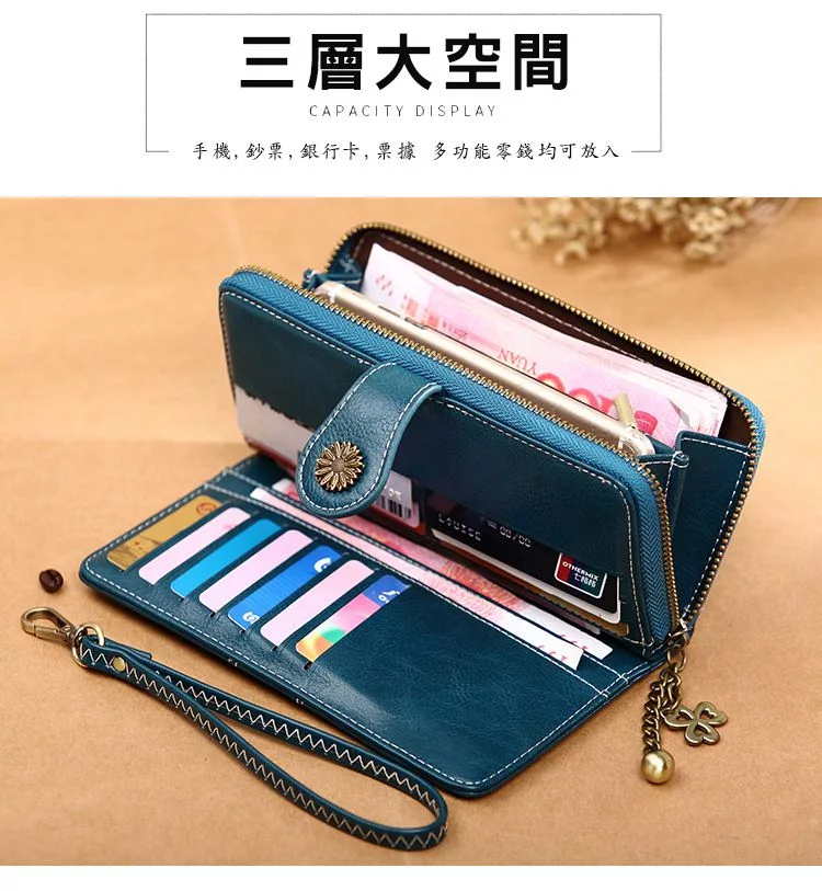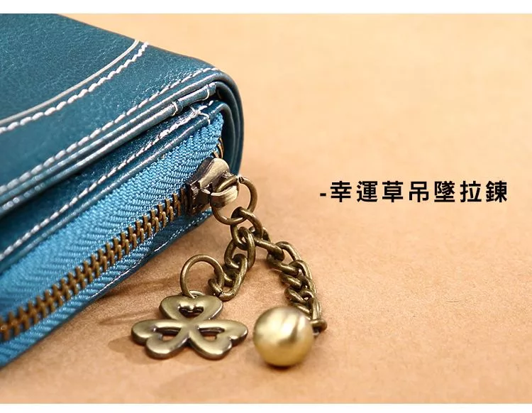 CHENSON真皮 18公分長夾第二代 超薄6卡翻蓋小長夾 (W26487-7) 藍