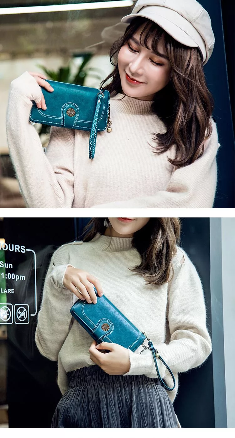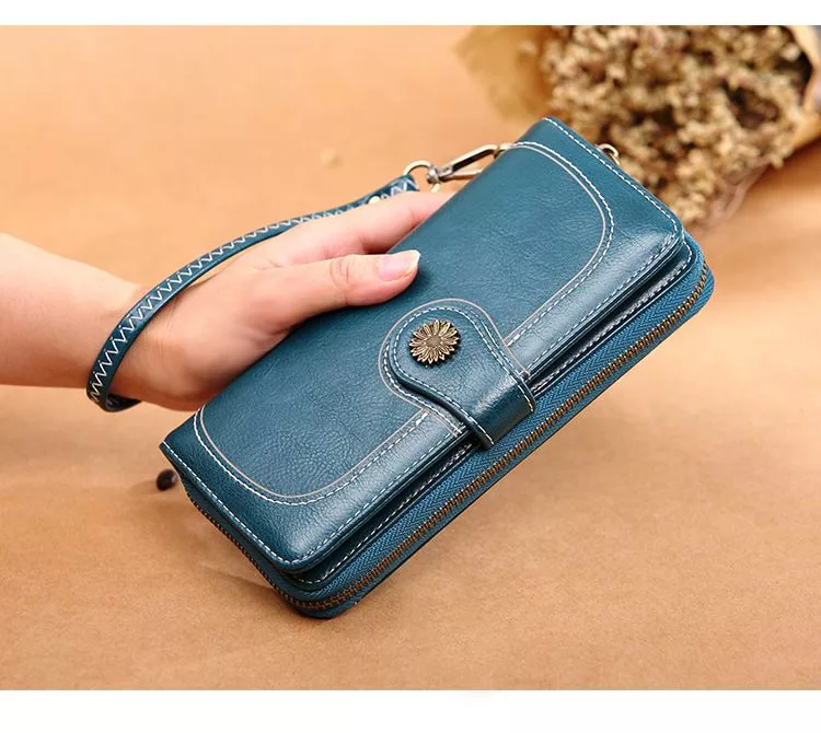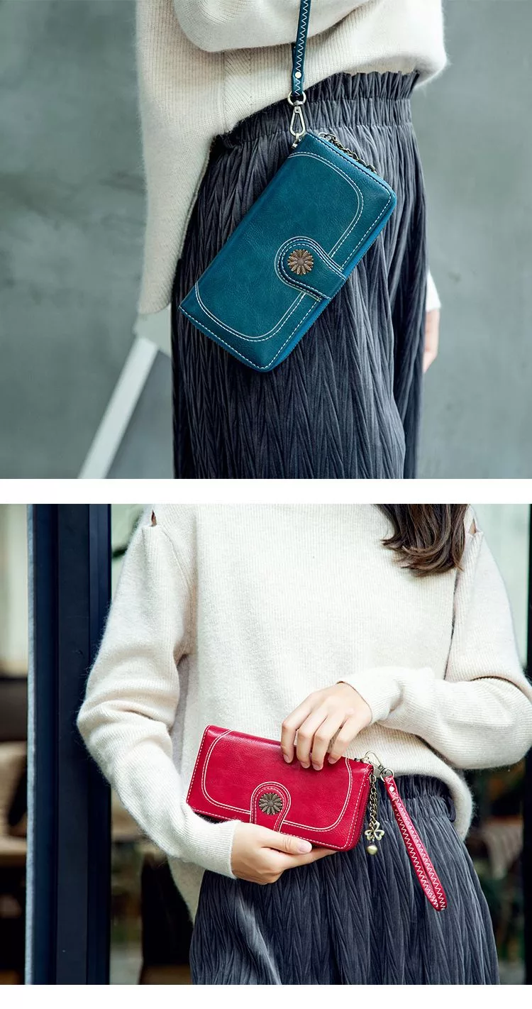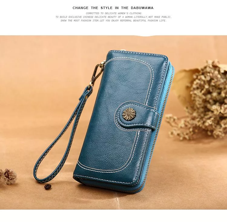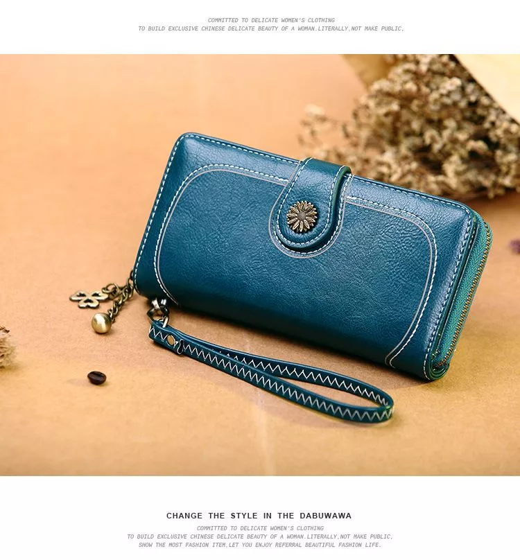 CHENSON真皮 18公分長夾第二代 超薄6卡翻蓋小長夾 (W26487-7) 藍