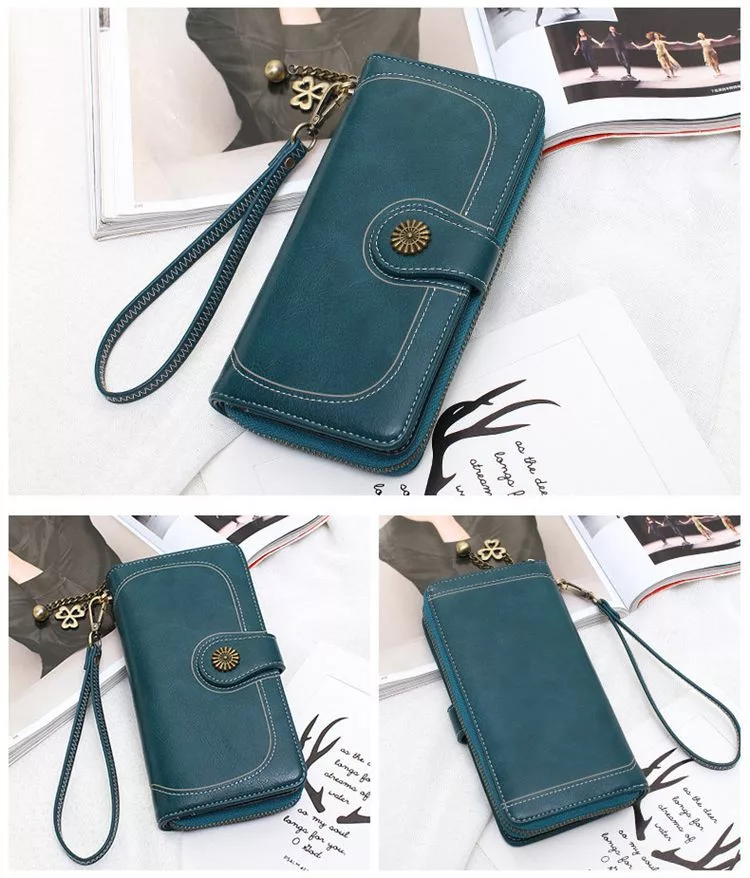 CHENSON真皮 18公分長夾第二代 超薄6卡翻蓋小長夾 (W26487-G) 海松綠