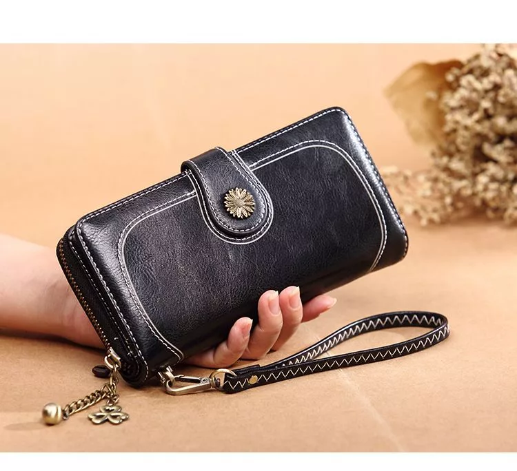CHENSON真皮 18公分長夾第二代 超薄6卡翻蓋小長夾 (W26487-3) 黑