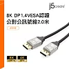 j5create凱捷 8K DP1.4 VESA認證公對公高畫質影音訊號線2.0米-JDC43