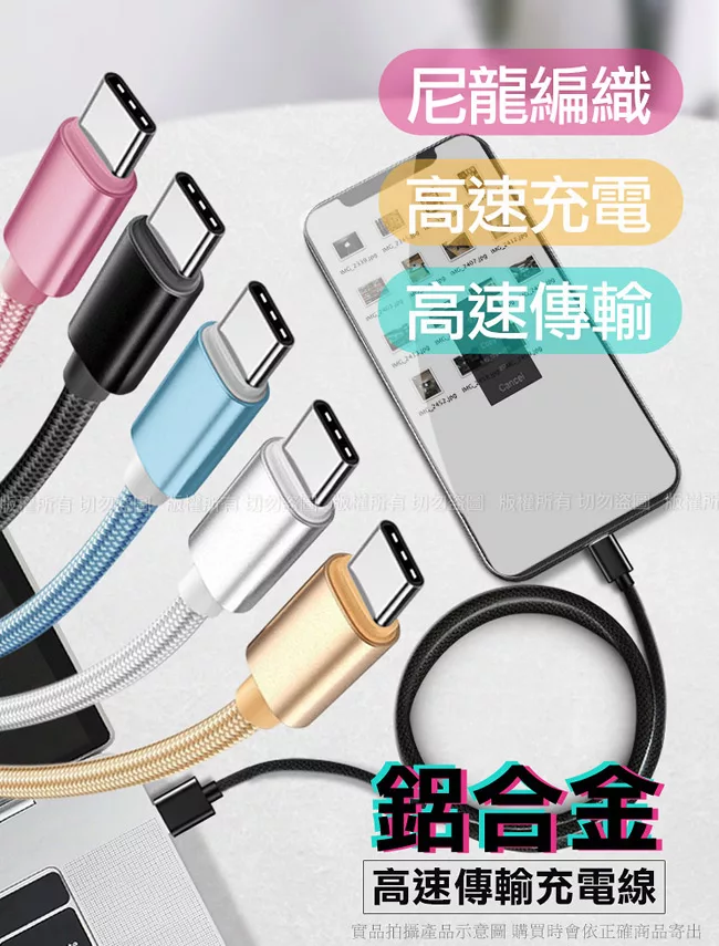 【好拾選物】絢彩編織TYPEC雙頭60W充電線/數據線 100cm -灰色