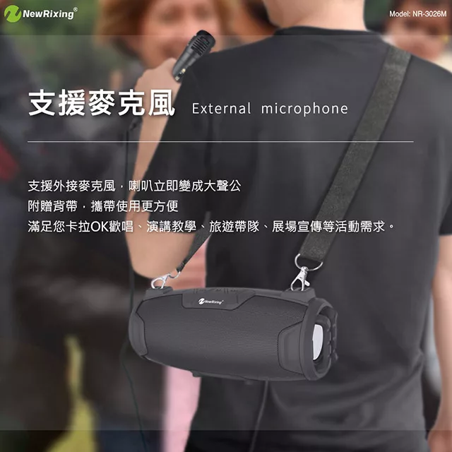 附贈麥克風、背帶,背帶式設計,外出攜帶方便,隨時將音樂帶著走