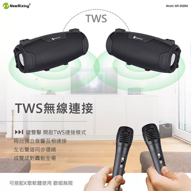 【全新TWS無線串聯技術】運用TWS無線串聯技術可使兩台喇叭組合成一對立體環繞音響,左右聲道同時輸出,提供電影院般的環繞音效感。