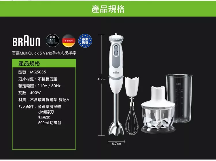 德國百靈BRAUN-手持式攪拌棒MQ5035(內附5大配件)