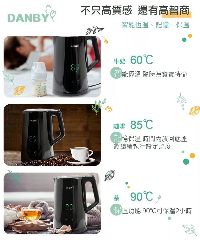 伊萊克斯 1.7L智能溫控電茶壺E5EK1-51ST