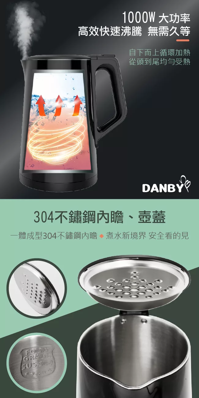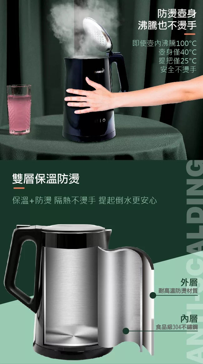 【勳風】1.8L 不鏽鋼雙層防燙電茶壺/快煮壺 NHF-K3005