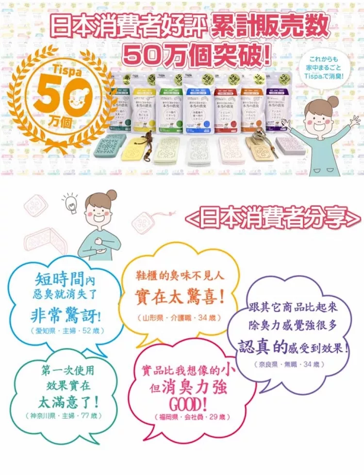 * 本商品特殊吸臭材質於日本加工中國包裝, 為總經銷商正式商檢查驗進口, 請安心購買使用; 請勿任意購買仿間或拍賣網, 來源不明之TISPA仿製品, 可能無效且有害環境與人體!
