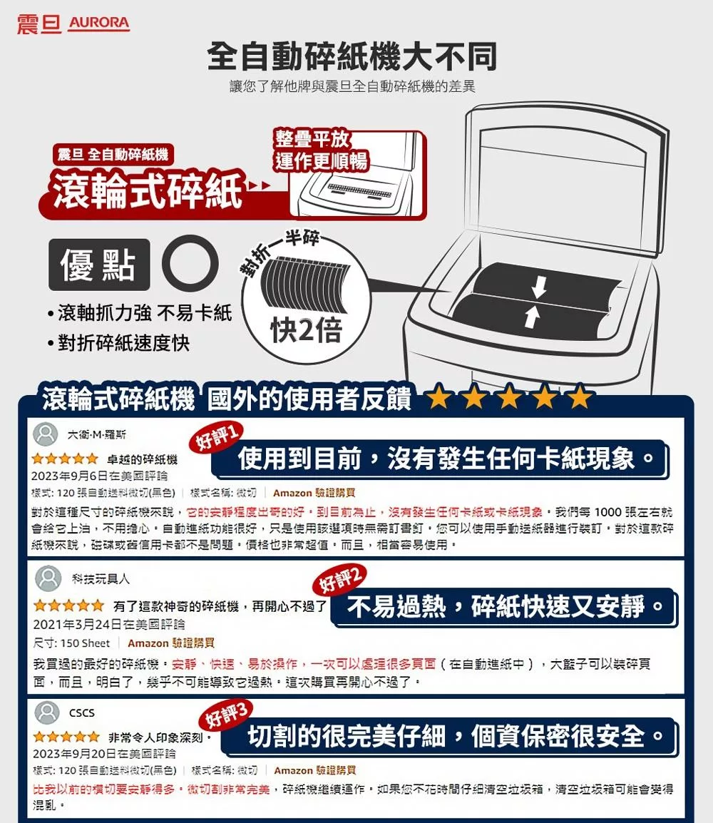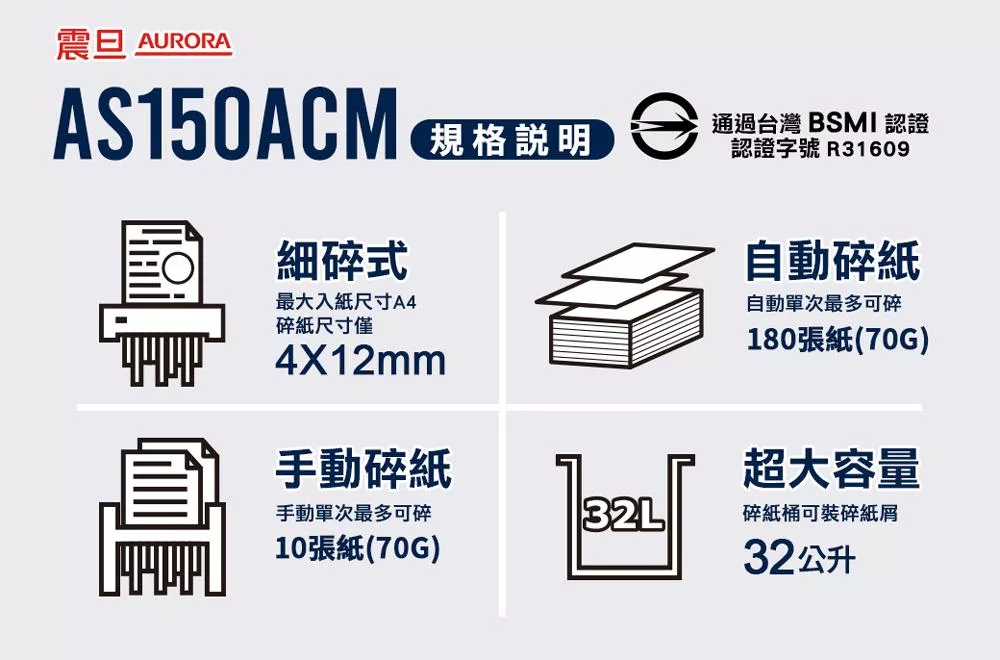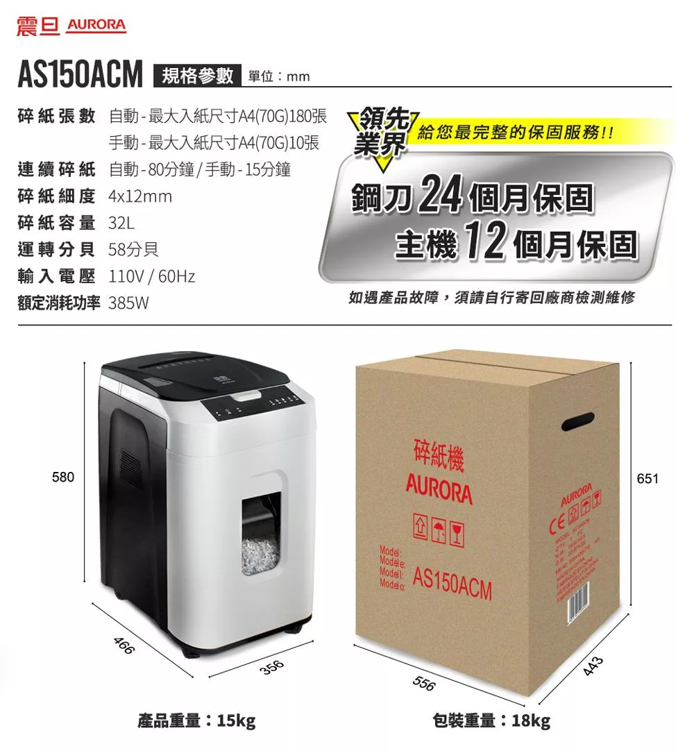 AURORA震旦 全自動120張細碎式多功能碎紙機(19公升)AS120ACM
