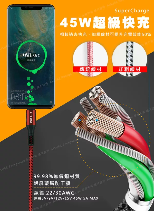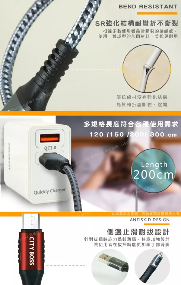 CityBoss勇固系列 for Micro USB 編織耐彎折快速充電線-200cm