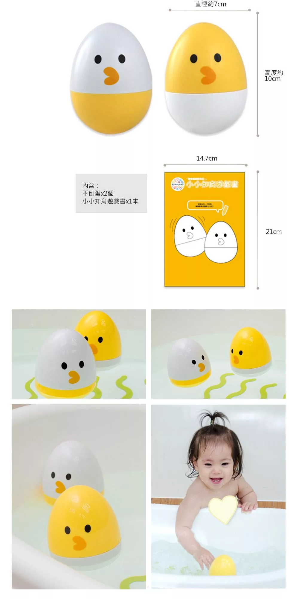 進階認知學習概念:讓幼童喜歡幫不倒蛋洗澡,學習沐浴洗澡概念,再長大一些可誘導學習浮力、重力等進階認知概念,適合3歲以上寶寶練習。