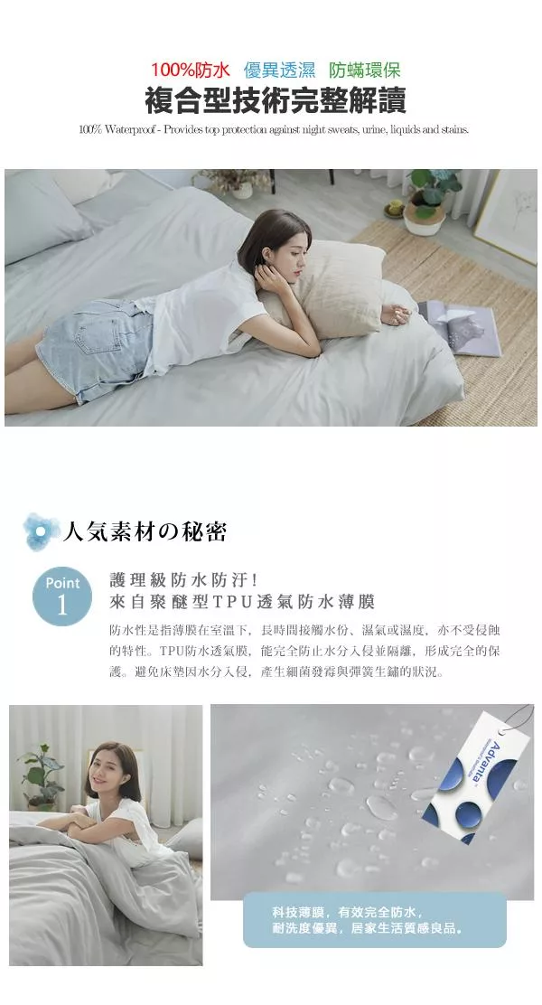 《DUYAN竹漾》防潑水雙人平單式保潔墊