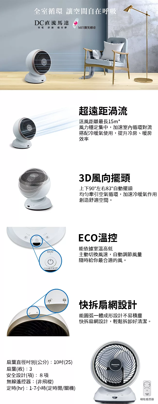 日本DOSHISHA 遙控擺頭DC循環扇FCS-193D NWD