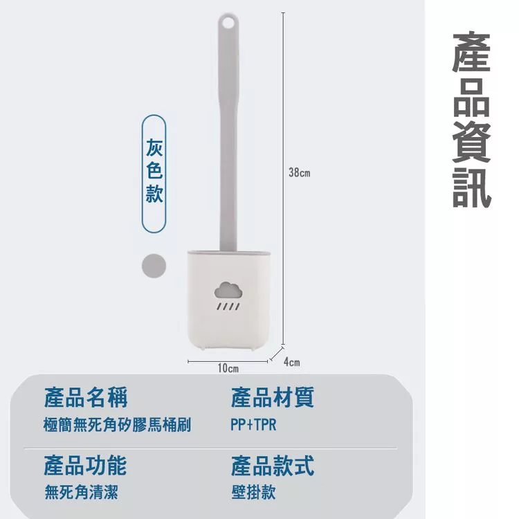 【E.dot】軟硬毛S型無死角馬桶刷 灰色