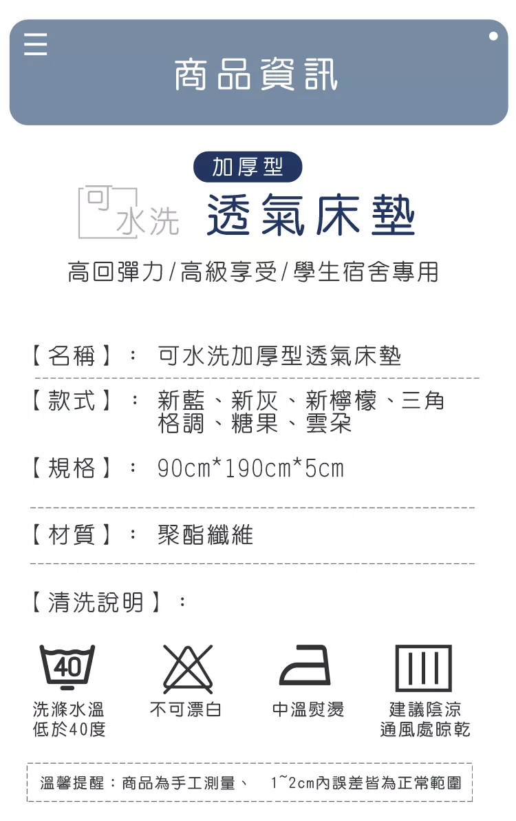 【巴芙洛】加厚透氣軟床墊單人/加厚透氣日式床墊 單人床墊/防疫好眠 軟床墊-三角