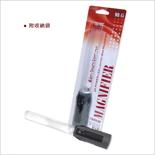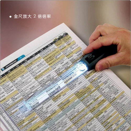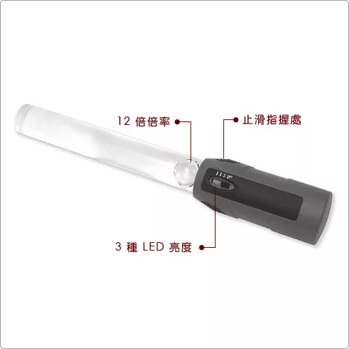 本商品一件入、附收納袋 x 1,適用 AAA 電池 x 3。年紀大的長輩或常閱讀字體過小的報章雜誌的您,需要使用放大鏡輔助閱讀。此款尺型照明放大鏡,視幅長且服貼書頁,可當閱讀不跳行的輔助線;把手附橡膠製手指握處觸感佳;全尺放大倍率 2 倍、焦點放大處倍率可達 12 倍,可更清楚閱讀;附 3 種亮度 LED 輔助照明,喜愛夜讀者相當適用;當鏡面髒汙時,請勿以水沖洗、或以有酒精成分的清潔液擦拭;僅以柔軟乾淨的布擦拭即可、避免刮傷。