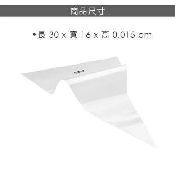 尺寸:擠花袋長 30 x 寬 16 x 高 0.015 cm;袋壁厚 75 mic (0.0075cm)