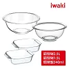 【iwaki】日本品牌耐熱玻璃微波烘焙四件組 調理碗1.5L/2.5L+烤盤340mlx2(原廠總代理)