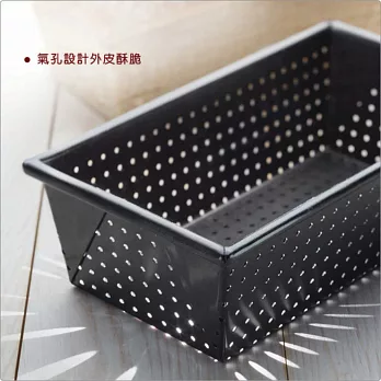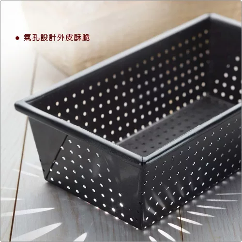 ※ 透氣孔圍繞整個烤盤盤身,中心與側邊孔洞可在烘烤過程中輔助散熱,保持麵包外皮酥脆。