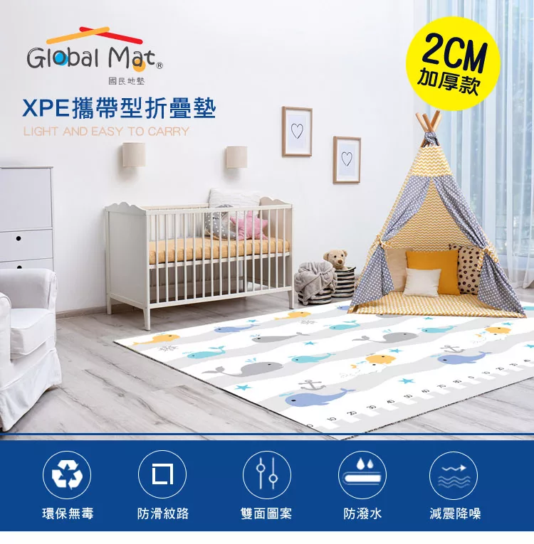 兒童4cm抗菌摺疊地墊(大塊系列) 大塊灰