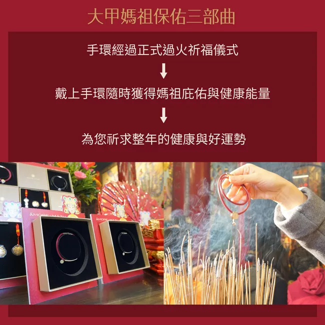 皆在鎮瀾宮過火祈福加持,高效能量技術結合祈福保平安的健康飾品,象徵神明庇佑,將平安與祝福隨身帶著走。而在傳統信仰的基礎上,更融合專利製程與奈米化複合鈦鍺原料,打造出兼具平安與機能的全方位護身符。