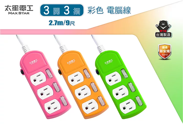 【太星電工】一發連動彩色四開三插電腦線/3P 6尺(混色) OCD43306 白色