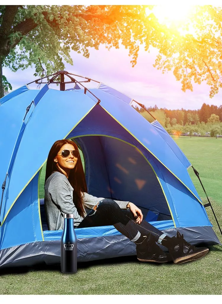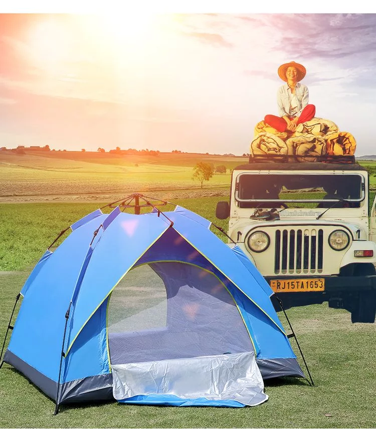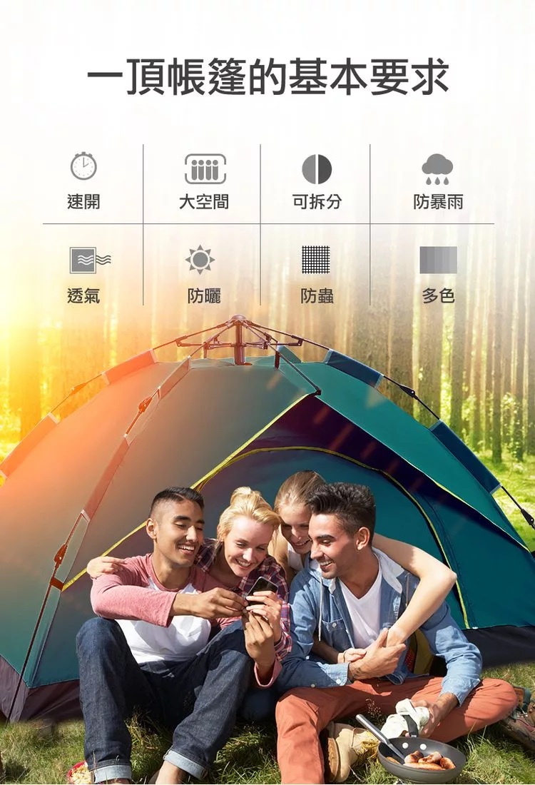 Besthot 3-4人全自動天幕速開黑膠帳篷-附野餐墊、防潮墊