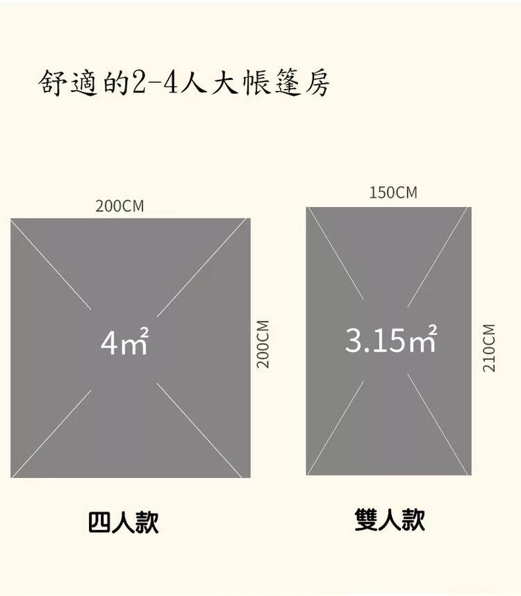 雙人款:150x200x135cm、防潮墊/200x150cm