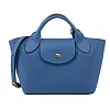 LONGCHAMP ÉPURE系列牛皮壓印手提/斜背兩用包(迷你) 暗灰藍