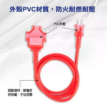 Tyson太順電業 TS-333AS 3孔3切3座延長線(拉環扁插)-1.8米
