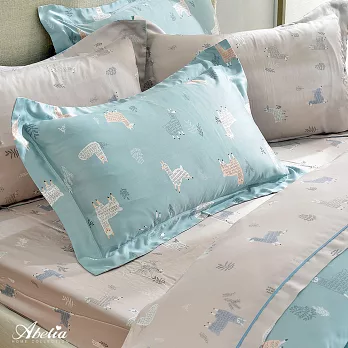 英國Abelia《吾悠貓圖》特大天絲木漿纖維四件式兩用被床包組-灰色