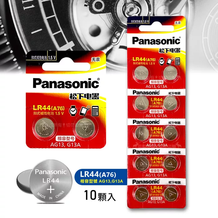 Panasonic 國際牌 1.5V 鹼性鈕扣型電池 LR44 / A76 / AG13 / G13A(單卡10顆)