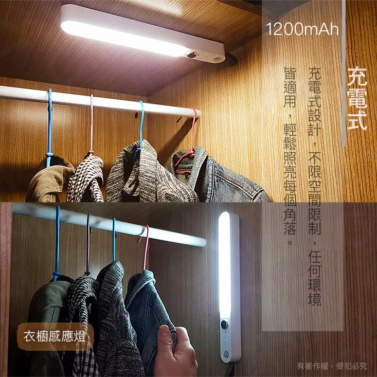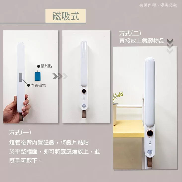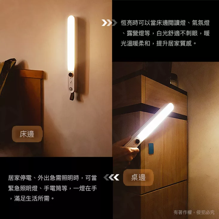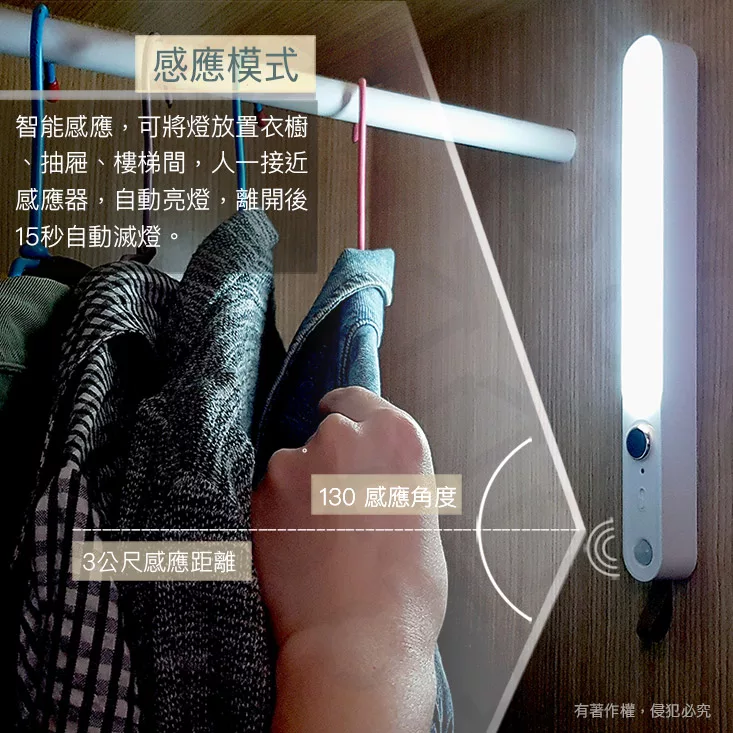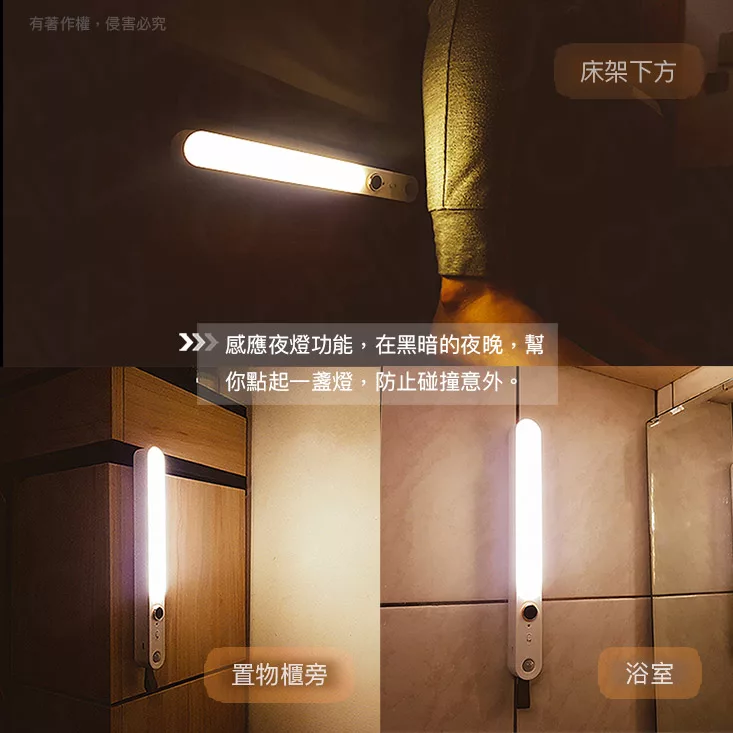 伊德萊斯 人體感應燈 LED小夜燈 AH-87E 磁吸感應燈 餵奶燈 過道燈 (USB充電) 銀邊40cm