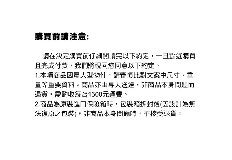 當您於此頁面下單表示您了解並同意下述規範,請注意!