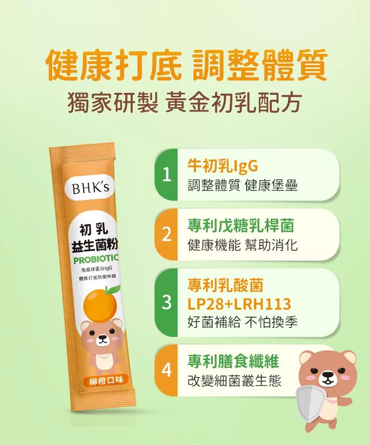 商品名稱:BHK's 兒童 初乳益生菌粉EX 柳橙口味