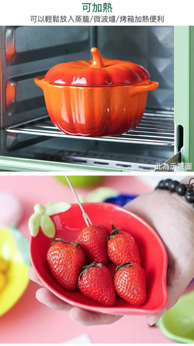 Time Leisure 創意水果造型陶瓷碗/可微波可烤箱 16CM草莓小碗