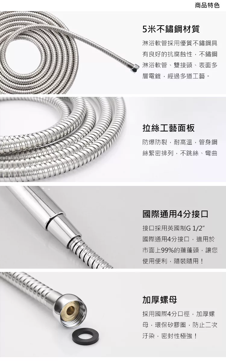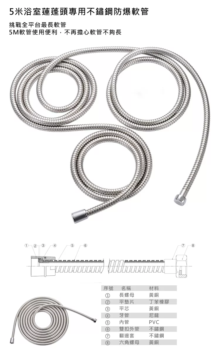 5層加厚PVC防纏繞加密耐用蓮蓬頭軟管-1.5M 銀色